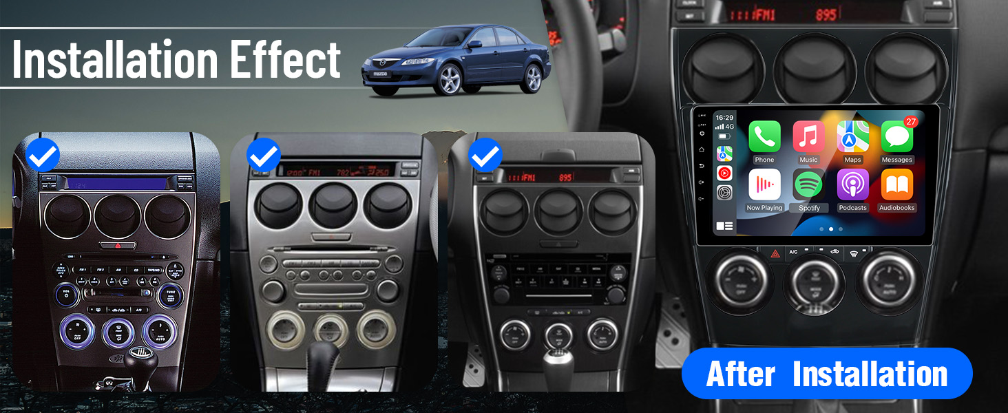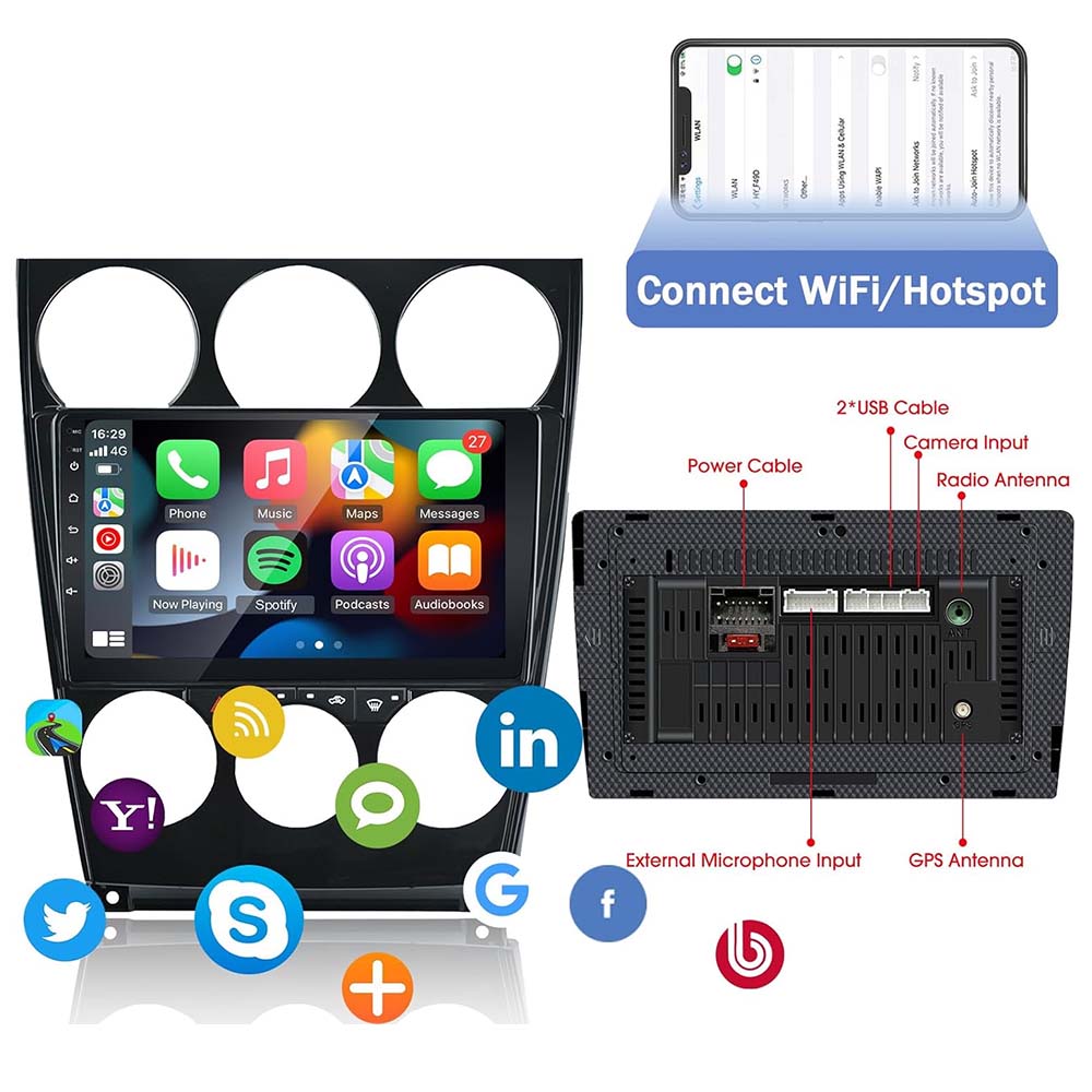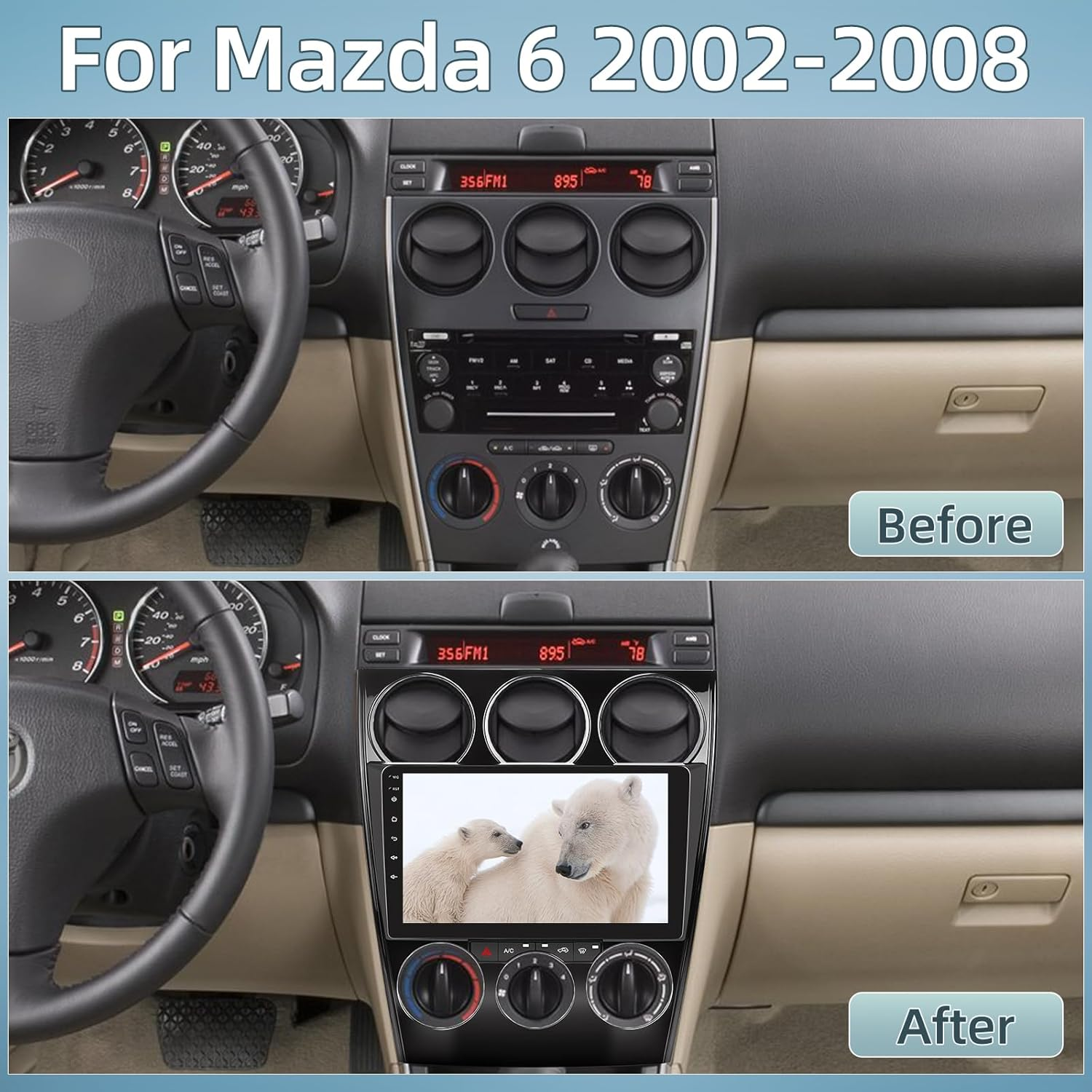 9 Inch Touch Screen for Mazda 6 Atenza 2002-2008 Radio, Android Car Stereo with Carplay Android Auto in Dash GPS Navigation Bluetooth WIFI FM Steering Wheel Controls