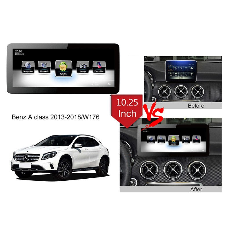 10.25" Android10 Aŭta Radioaparato Multimedia Player por Mercedes-Benz A Class 2013-2018/W176 4G + 64G GPS-Navigacio Stereo Ĉefunuo