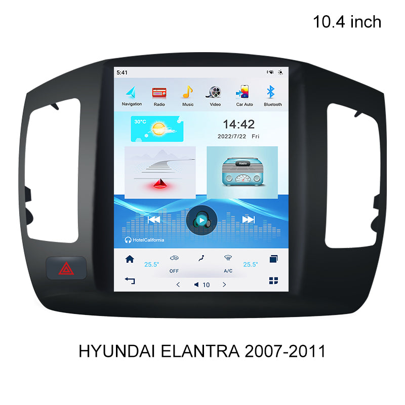 10.4 Coloj Tesla Vertikala Ekrano Aŭta Plurmedia Ludilo Por HYUNDAI ELANTRA 2007-2011 Bluetooth GPS-Navigado