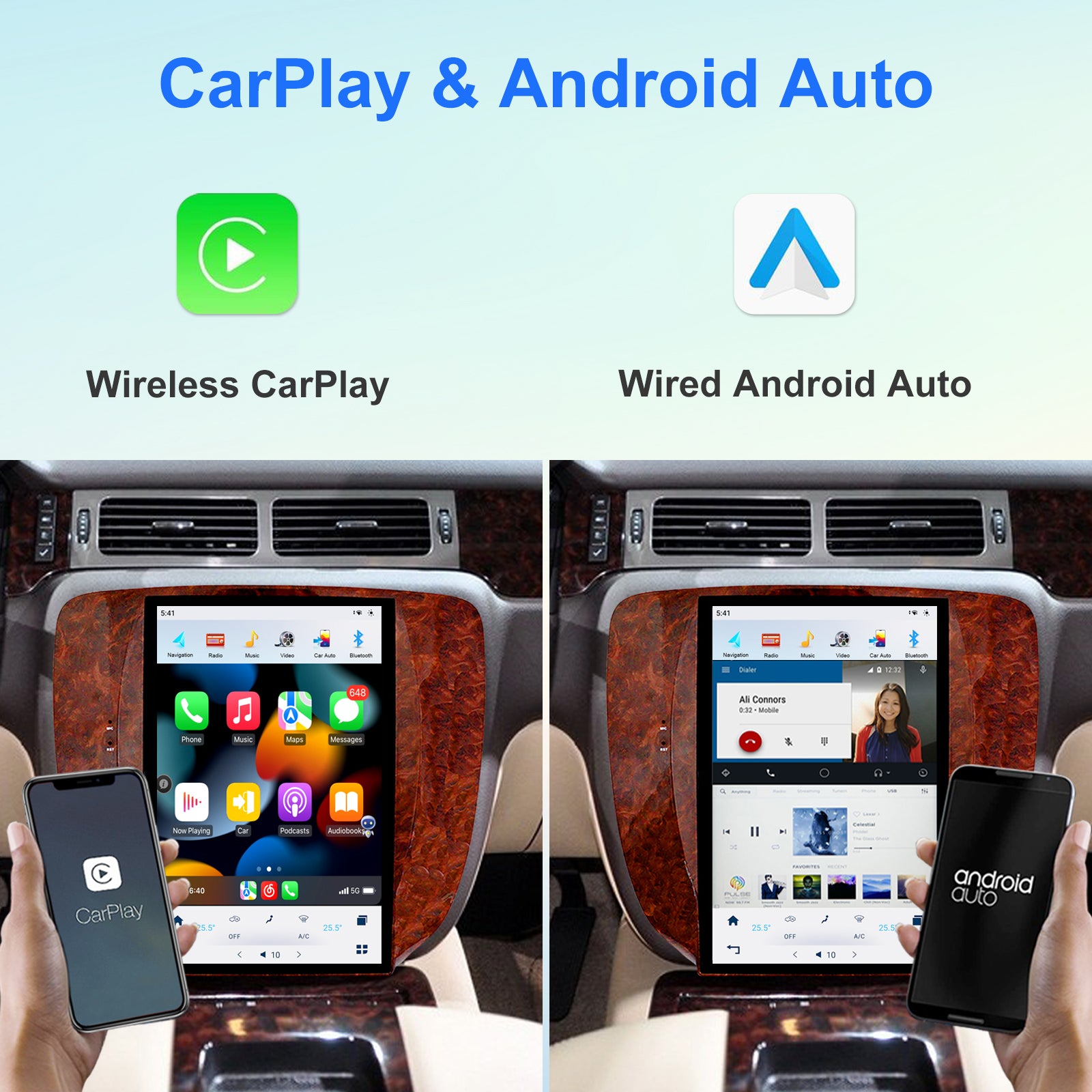 [Multfunkcia drato kaj sendrata Aŭto-Ludilo] Subtenu anglan voĉan kontrolon kaj originalan aŭtan stirilon, antaŭinstalu Google kaj YouTube kaj Play Store, elŝutu ajnan APLaĵon kiel vi ŝatas. Subtenu Waze, Facebook, YouTube, televidajn programojn