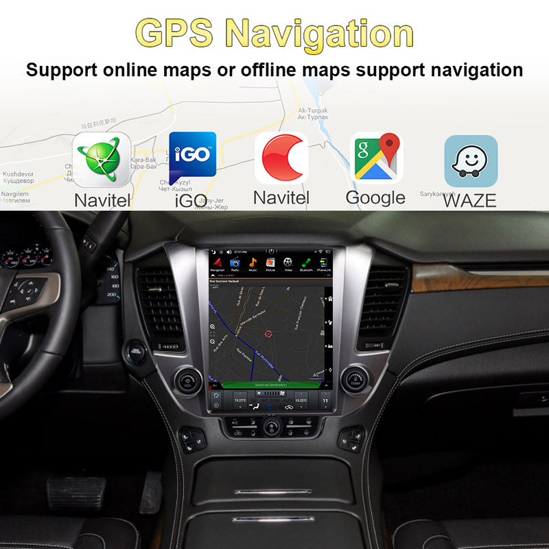 2din Tesla Ekrano Aŭta Radio Por GMC Yukon 2014-/Chevrolet Tahoe 2014-/Chevrolet Suburban/Denali 2014- altnivela Aŭta Stereo Plurmedia Ludilo Ĉefunuo Sendrata Carplay