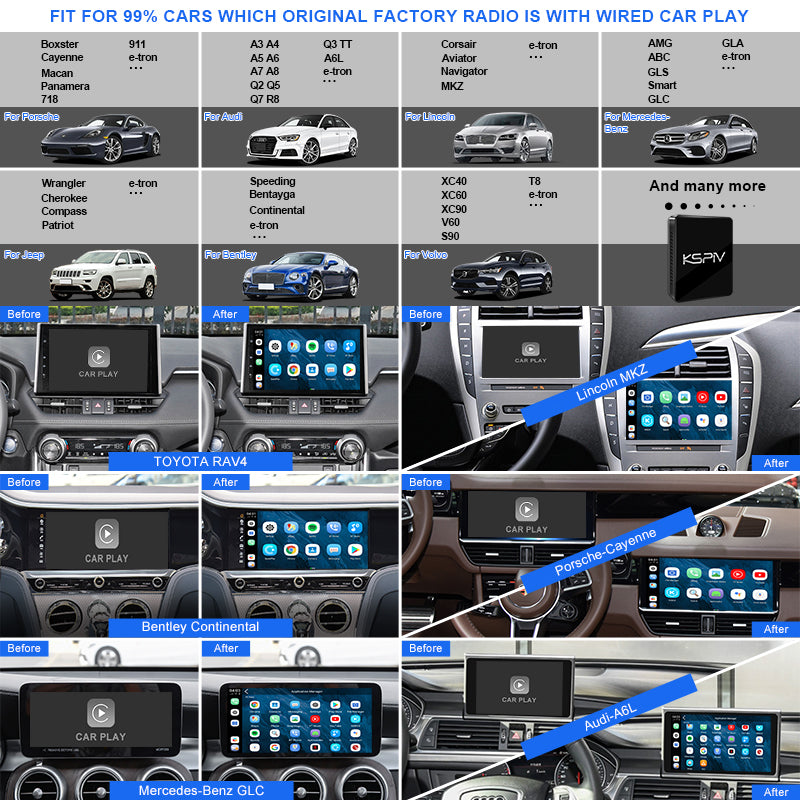 KSPIV Android Auto Wireless Carplay AI Box Fit for Cars with OEM/Factory Wired Carplay,Wireless CarPlay Android System Navigation