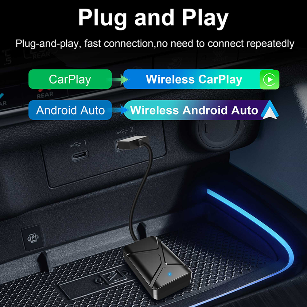 2-in-1 Wireless CarPlay & Android AutoAdapter Converts Wired to WirelessCarPlay, Plug & Play Stable Control & NoDelay