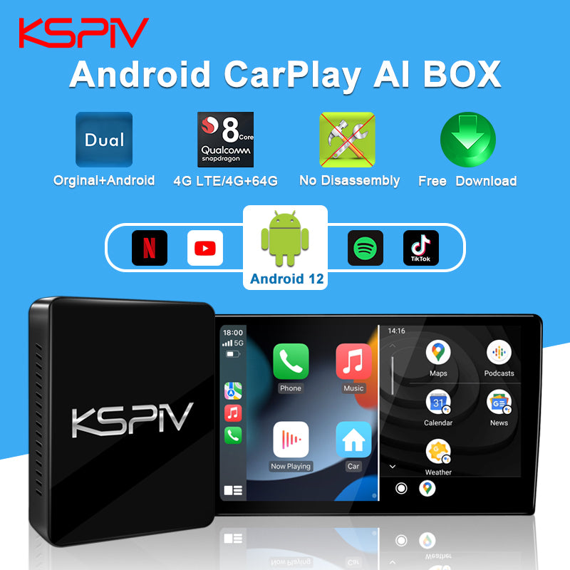 KSPIV Android Multimedia Video Magic Box AI Box with Netflix YouTube Disney Android Auto Wireless Adapter for Factory Wired CarPlay