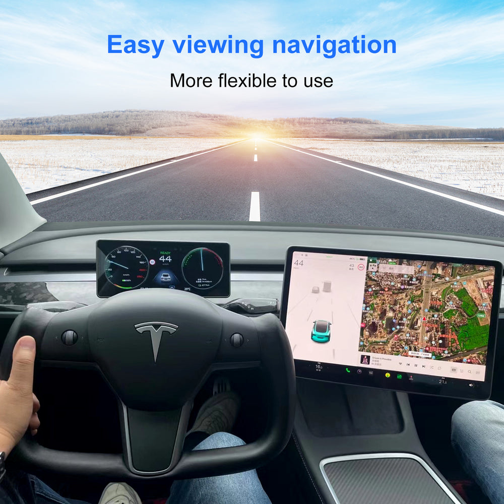 KSPIV Linux System Mini LCD Dashboard For Tesla Model 3/Y 2017-2022 Smart Digital Speed Mileage Meter Driver Head Up Display Panel