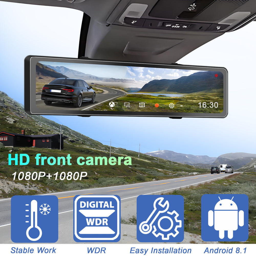 Upgraded 11.88'' Rear View Mirror Camera Mirror Dash Cam Front and Rear 1080P Backup Camera Full Touch Screen with Loop Recording, G-Sensor Night Vision 170° Wide Angle