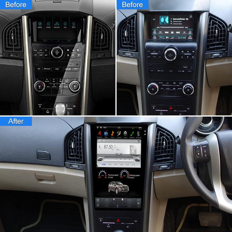 The 12.1" Tesla Style Screen gives Mahindra XUV500 W6/W8 2011-2015 owners an exceptional viewing experience, superior sound quality, and the convenience of seamless multimedia integration. Enjoy this luxurious entertainment upgrade with the the full suite of navigation, GPS and DVD playback that provides a sleek, modern experience.
